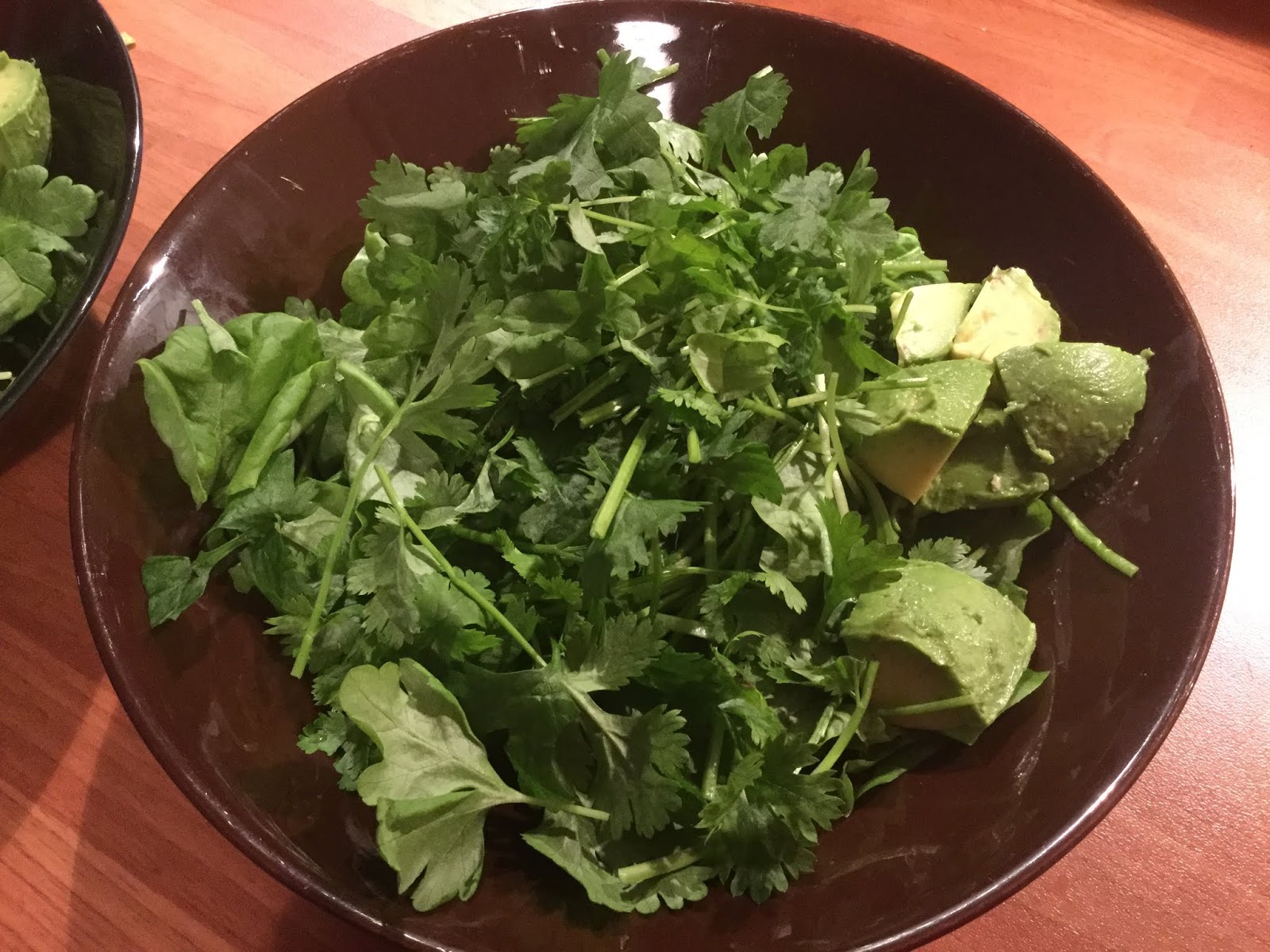 Sekoita isossa kulhossa kaikki vihreät ainekset pienemmäksi silputtuna. Jaa salaatista sopiva määrä kullekin lautaselle.