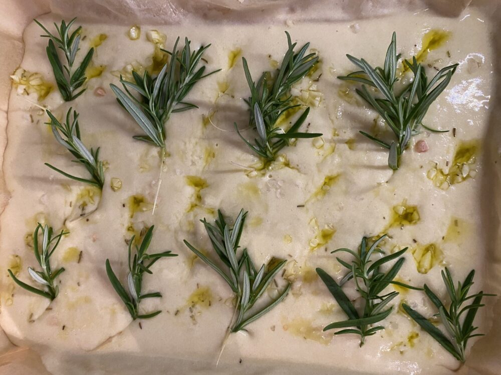 Focaccian hauska puoli on lisäksi se, että sitä voi valmistaa vaikka millä eri tavoin. Tässä ohjeessa on nyt ihan perusversio ilman kummempia lisukkeita, paitsi rosmariinia. Focacciaan sopii kuitenkin erinomaisesti niin tomaatit, oliivit, pähkinät, parsa kuin muutkin vihannekset – siitä vaan rohkeasti kokeilemaan!
