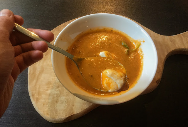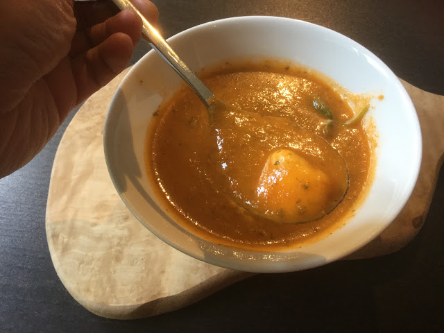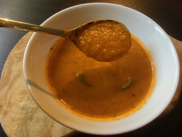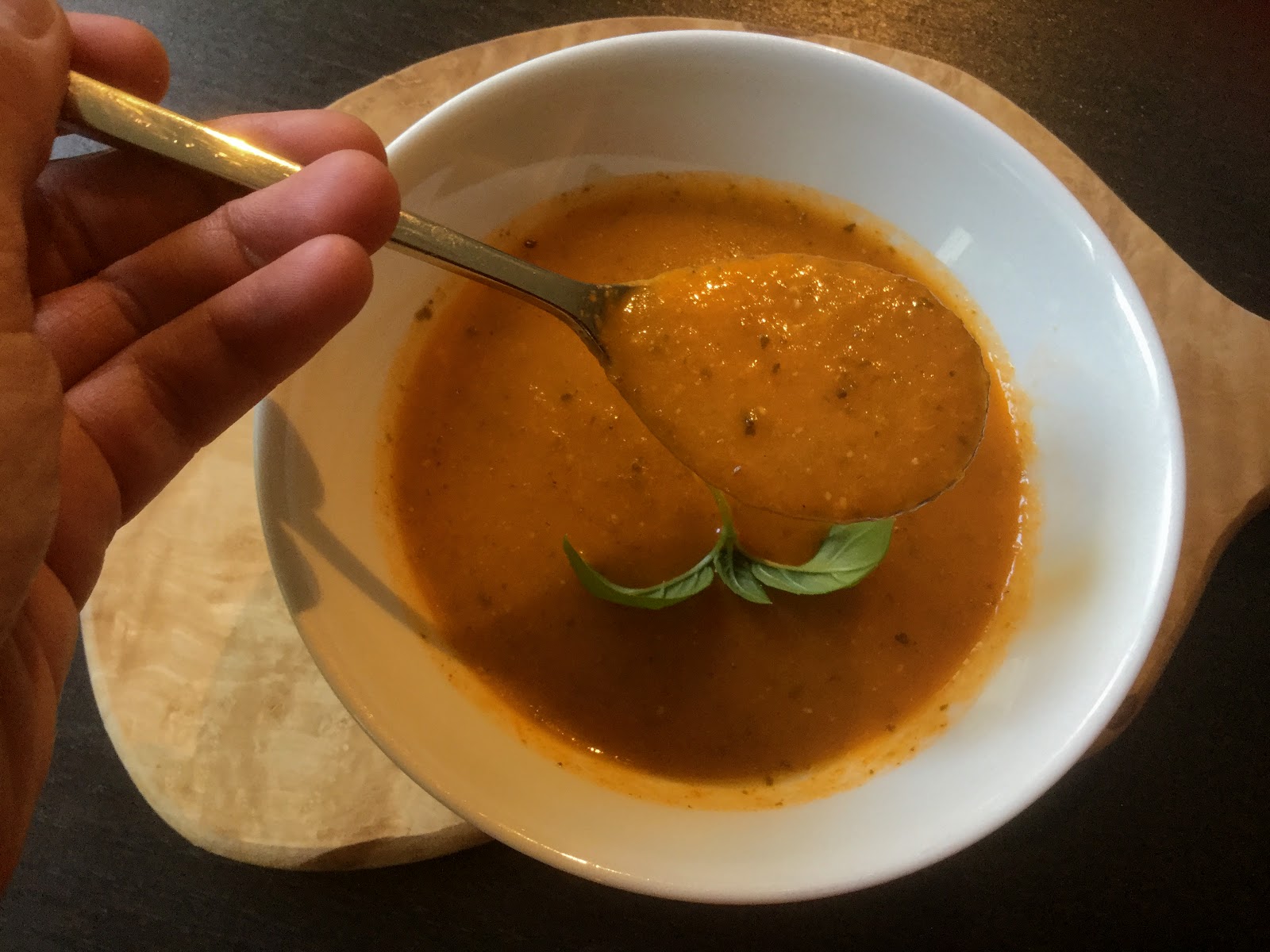 Tämä tomaattikeitto ei ole liian tomaattinen, toisin sanoen se ei maistu tomaattimehulta, kuten niin monet aiemmin maistamani. Tomaatti sekoittuu täydellisesti yrttien ja valkosipulin kanssa antaen keitolle aromikkaan ja lempeän maun.