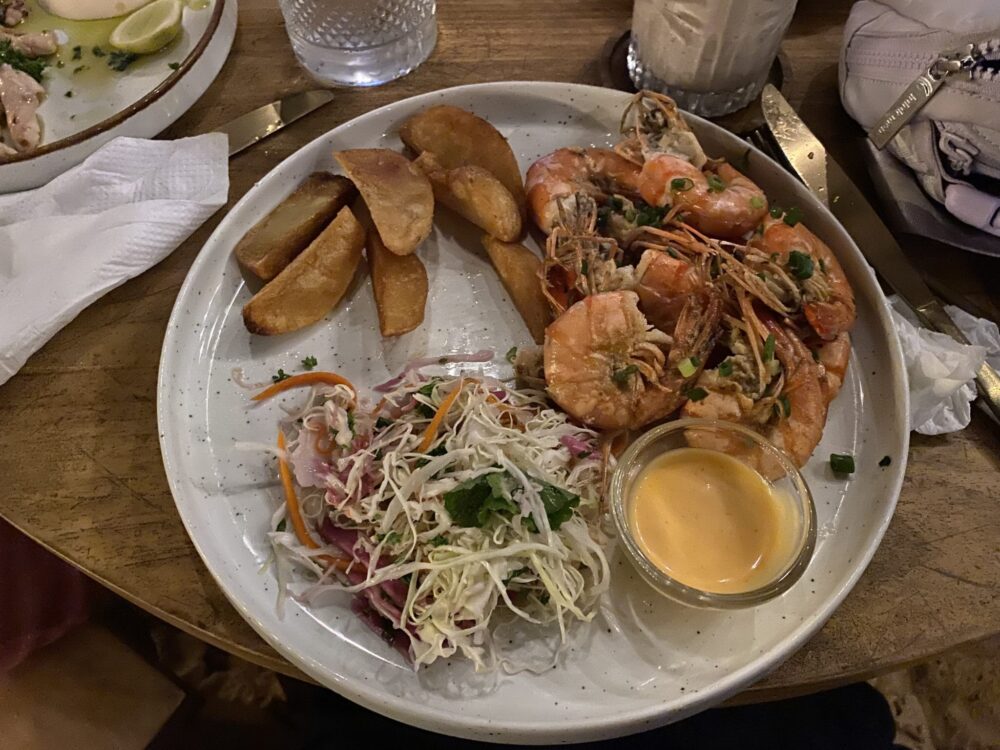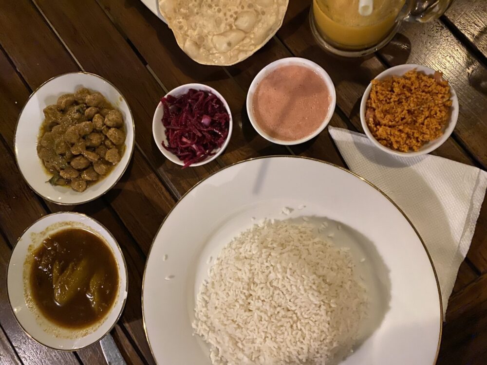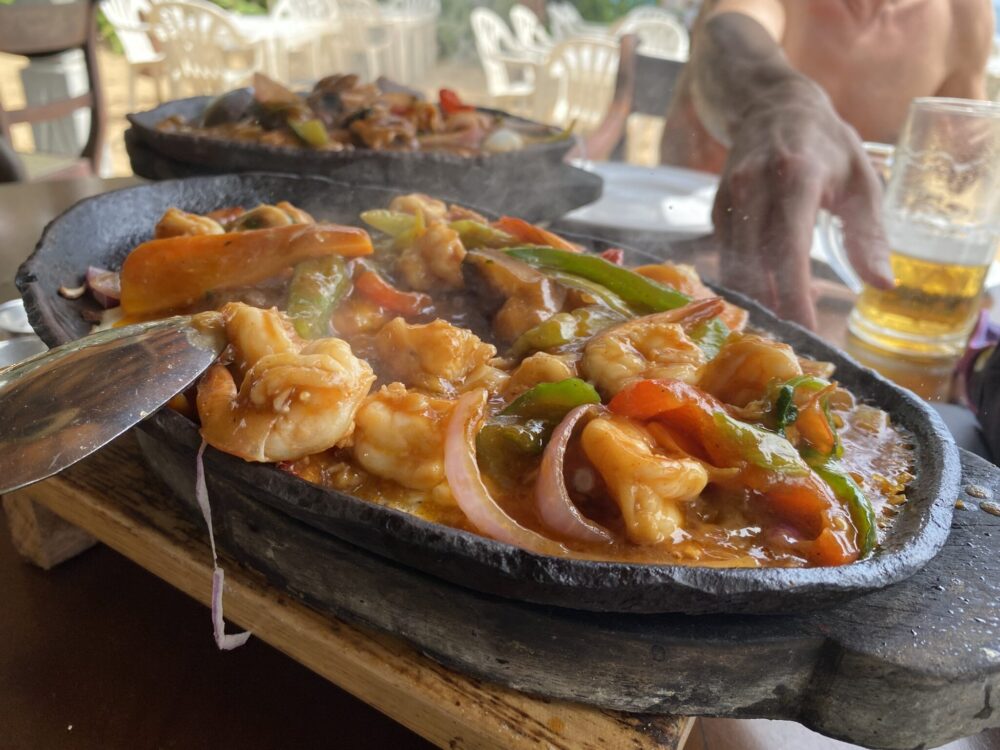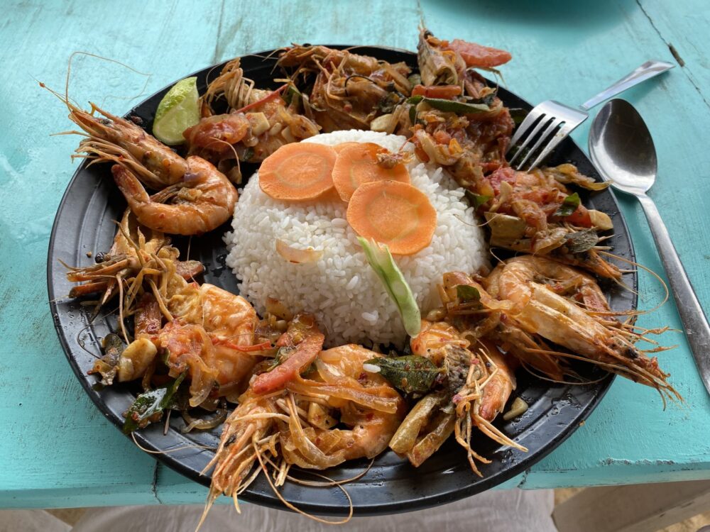 Kaikenlainen deviled -proteiini on erityisesti Sri Lankan juttu, ja Deviled Prawns oli annoksena vähän turhan usein. Se oli alkuun hyvää, ja kyllähän niistä ravuista nauttii, mutta sitten se tomaattinen kastike alkoi tökkiä. Tomaattiset maut olivat muutenkin vahvoja, enkä sano että ne olisivat olleet pahoja, mutta niihin kyllästyi. Thaimaassa ruoka on jotenkin freesimpää, ja ne etikkaiset maut ja ihanat kastikkeet ovat ihan lempiruokani maailmassa. Sri Lankalla ruoka on hyvää, mutta ei niin hyvää. Tuoreet prawnsit ovat silti aina herkkua, ison annoksen niitä sai 2400–3600 rupialla, eli pyöreästi vähän alle tai vähän yli kympillä. Rice & curryt ja fried ricet olivat järjettömän kokoisia annoksia, ja halvimmillaan sellainen irtosi muutamalla eurolla.