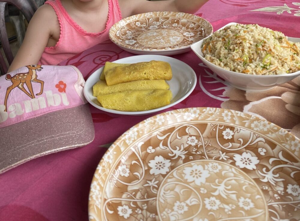 Vegejätskiäkin löytyi muutamaan otteeseen, ja parit mehujätskit kaupasta. Lapsi ei ollut erityisen innoissaan ruoasta, mutta alkukankeuden jälkeen söi riisiä ihan hyvällä ruokahalulla. Hänen lemppareitaan olivat hopperit hillolla, beef chop suye, riisi tomaatti(pasta)kastikkeella ja pekonimunakas. Välillä otettiin kaksi ruokaa ja annettiin hänelle osa, mutta yleensä sai oman annoksen, koska me ei haluttu tehdä liikaa kompromisseja omien ruokien mausteiden osalta.