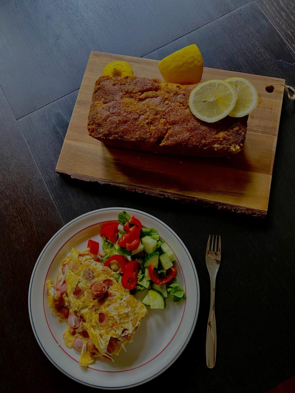 Meillä napero toivoi pitkään ruuaksi nakkimunakasta ja sitruunakakkua. En tiedä mistä se idea tuli, kun ei hän ollut ikinä edes maistanut munakasta, mutta yhtä kaikki tätä haavetta hän toisteli varmaan parin viikon ajan päivittäin. Sitten eräänä viikonloppuna päätin, että nyt hän saa sitä nakkimunakasta ja sitruunakakkua. Sitruunakakkua en ollut ennen tehnytkään, mutta tästä sitruunakakusta tuli niin herkullista, että jää kyllä vakituiselle listalle! Täydellisen mehevä sitruuna-polentakakku on kosteaa, pinnalta tahmaista, herkullisen sitruunaista kuivakakkua, joka vie kielen mennessään. Loistava idea esimerkiksi nyt pääsiäisen jälkiruoaksi!