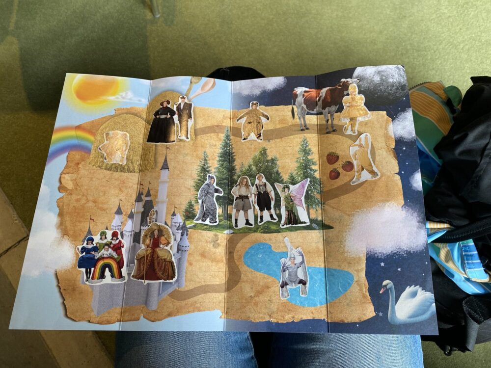 Ja hei erikoismaininta Nysän käsiohjelmalle, jolla on kerrassaan erokas toteutus: käsiohjelma avautuu näytelmän kartaksi ja mukana tulee näytelmästä tuttuja tarroja, jotka saa liimata kartalle. Ihastuttavan osallistavaa ja lapset huomioivaa!