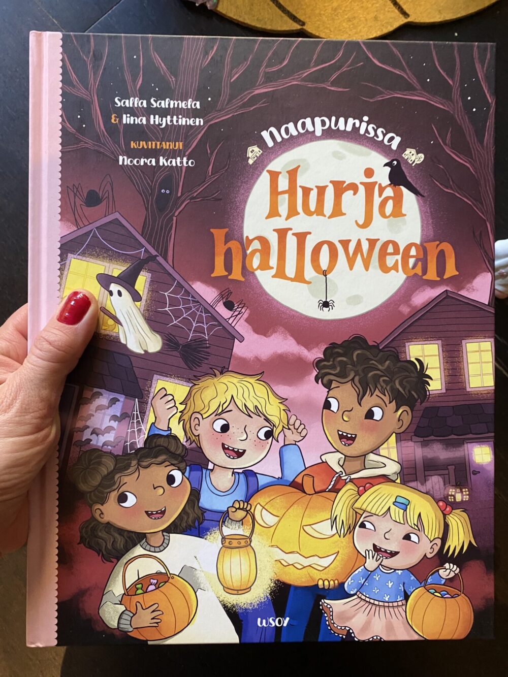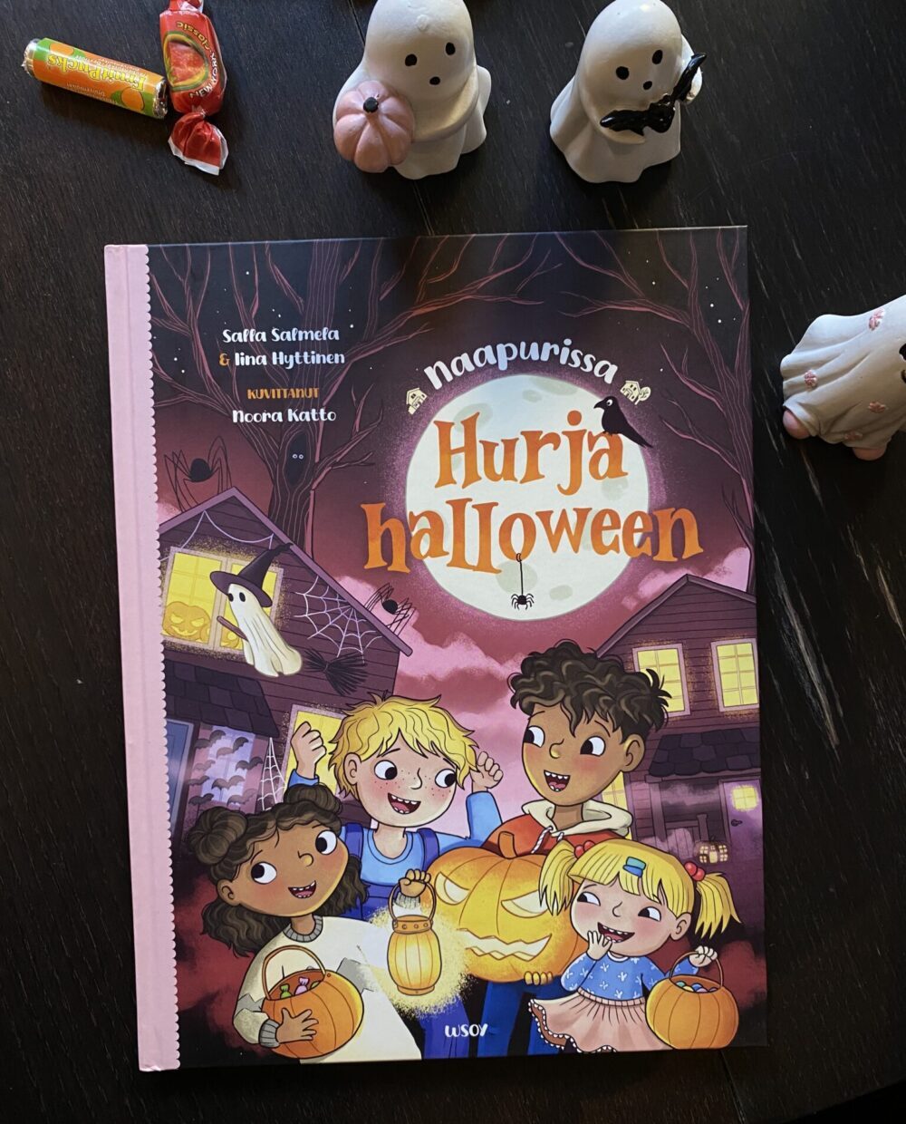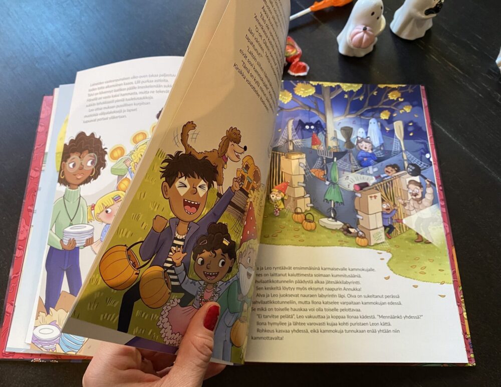 Meille tuli tänä syksynä luettavaksi Naapurissa: Hurja halloween – ja se osui aivan täydelliseen aikaan juuri syksyisen juhlan kynnykselle. Suomessa halloween ei vielä ole yhtä iso juttu kuin monessa muussa maassa, mutta lapset tuntuvat innostuvan siitä vuosi vuodelta enemmän. Oli siis todella kiva löytää kotimainen, lapsille sopiva kirja, joka tarttui aiheeseen positiivisella tavalla.