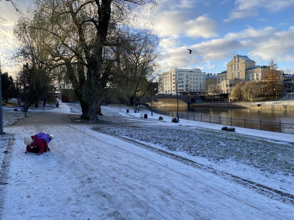 Mulla kyllä sydäntä lämmittää miten lapsi haluaa aina tutkia kirjakauppoja. Hän marssii myymälään, istahtaa lattialle ja alkaa selata mieluisia luettavia ja värityskirjoja läpi, eikä meinaa lähteä siitä mihinkään. Myös kaikenlaiset kynät ja tuoksuteltavat kumit ja muut härpäkkeet jaksavat kiinnostaa. Tunnistan nuo piirteet hyvin, koska olin itse ihan samanlainen. Käytiin siis useammassa kirjakaupassa ja erilaisissa pikkumyymälöissä mitä vastaan tuli. Käytiin kahvilassa missä sain ihanan piparkakkulaten ja napero kuppikakun, ja sitten olikin jo aika suunnistaa junalle. Meillä oli aika pitkä päivä ja ehdittiin paljon, ja oli kiva ettei tarvinnut kiirehtiä minnekään. Juna toi nopeasti kotiin ja oli vielä koko sunnuntai aikaa nauttia viikonlopusta myös kotona. Varsin toimiva setti siis tuollainen perjantai–lauantai -visiitti, koska tuntui että yhteen viikonloppuun mahtui hirveästi kokemuksia ja silti ehti myös hengähtää.