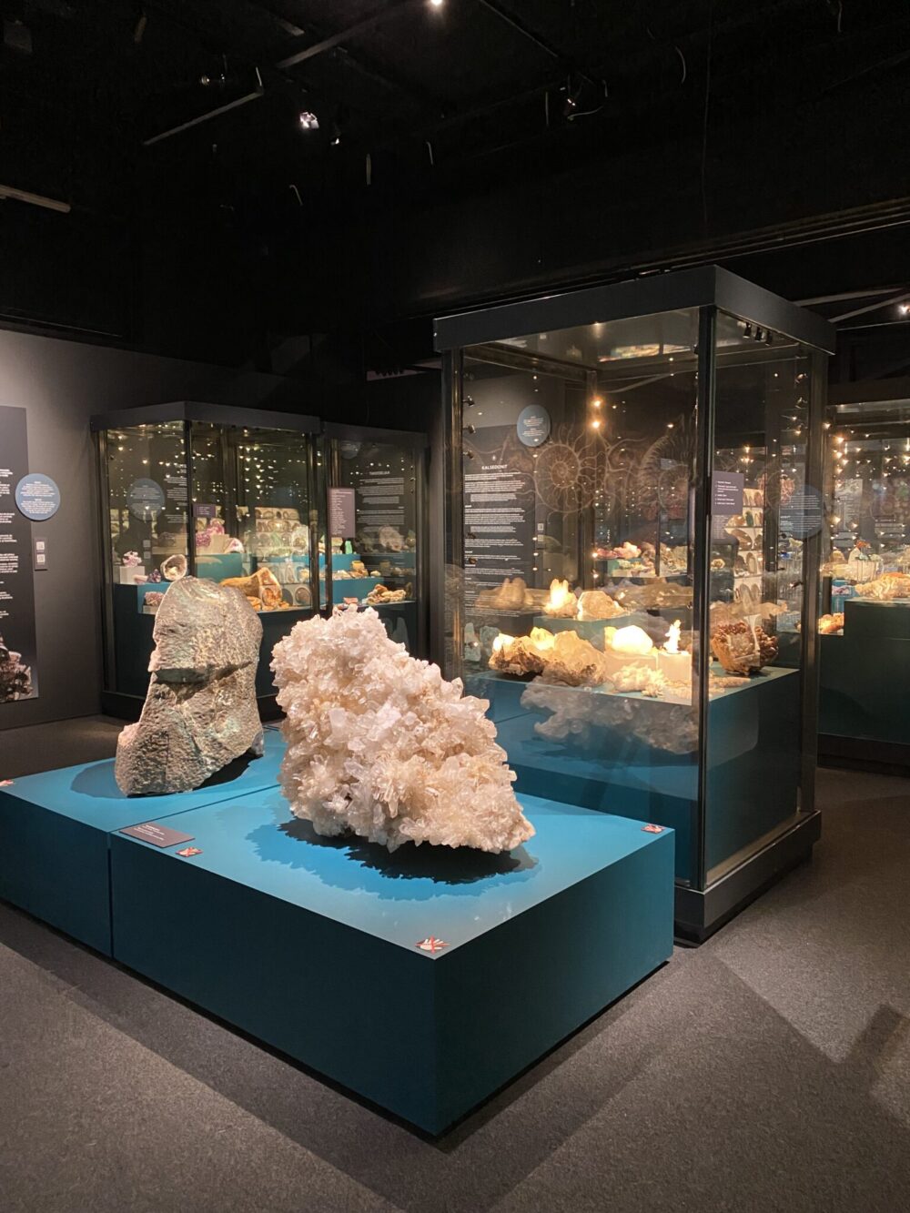 Museossa oli myös hieno näyttely erilaisista kivistä ja mineraaleista, joiden seassa oli muun muassa pala meteoriittiä ja fossiilisoitunutta dinosauruksen nahkaa ja munia.