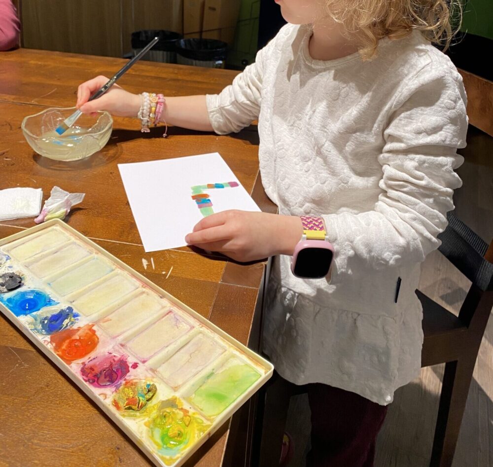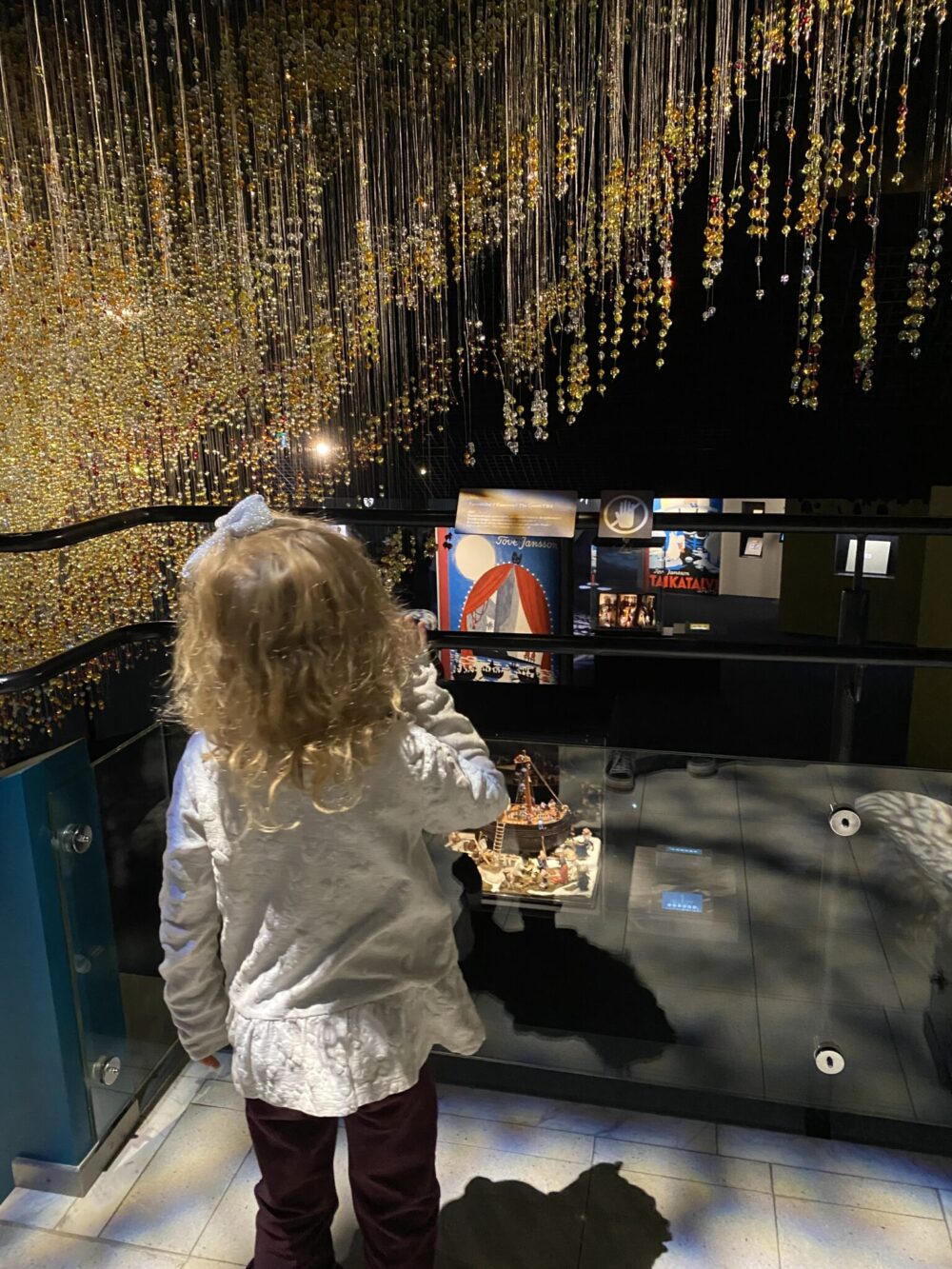 Ennen junalle menoa käytiin myös maailman ainoassa Muumi-museossa, joka löytyy Tampere-talosta. Napero ei ole ikinä mikään muumifani ollut, mutta onhan ne hahmot suomalaiselle lapselle joka tapauksessa tuttuja. Muumi-museo on hieno paikka, ja näyttely on rakennettu sekä pieniä että isompia muumifaneja ajatellen. On paljon otteita tarinoista, yksityiskohtaisia rakennelmia ja muun muassa malleja ensimmäisistä muumitaloista. Ateljeessa pysähdyttiin vähän maalaamaan, ja napero ripusti lopuksi taideteoksensa myös ateljeen seinälle.