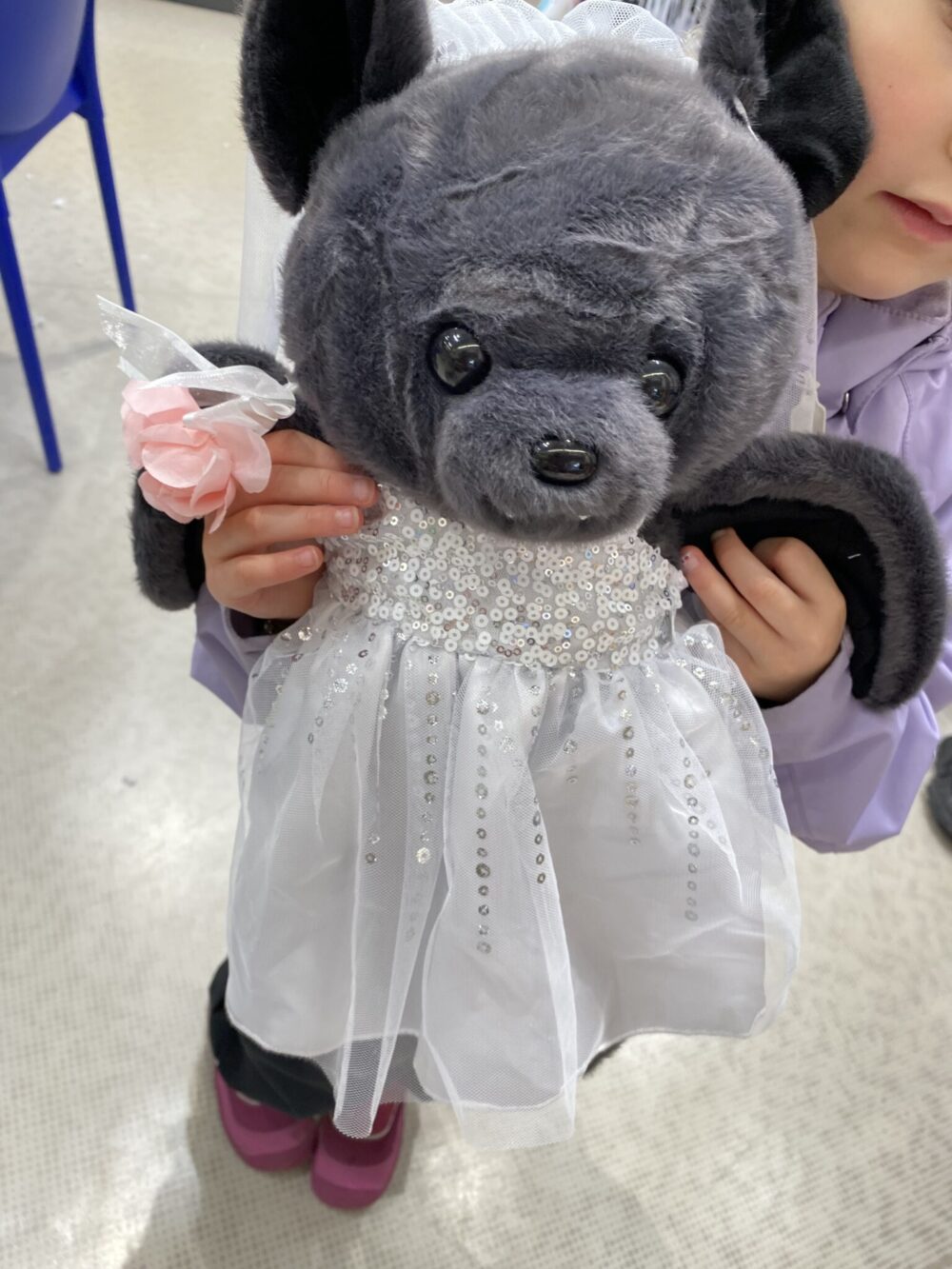 Työpaja jättää jäljen juuri näistä konkreettisista hetkistä: omien valintojen tekemisestä, lelun rakentamisesta ja sen pukemisesta. Hahmoista tulee heti omia, ja ne kantavat mukanaan lapsen ajatuksia ja toiveita. Pienet yksityiskohdat – sydämet, äänet, vaatteet – tekevät leluista aidosti henkilökohtaisia, ja se näkyy lasten ilmeissä ja innostuksessa. Huomaahan sen jo siinä, että kun itse valitsisin hahmon päälle hupparin ja farkut, lapsen valintana on aikamoinen häämekko huntuineen kaikkineen. Näin arkinen käynti työpajassa muuttuu pieneksi, mutta selvästi merkittäväksi kokemukseksi.