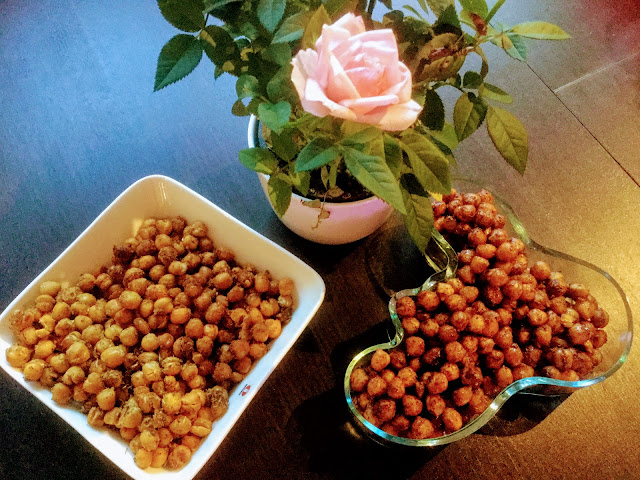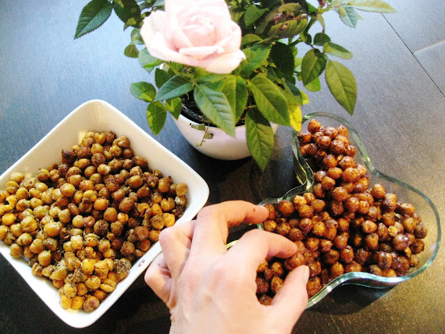 Tykkään napostella, heitellä salaattien sekaan pikkusattumia ja napata helposti mukana kulkevia eväitä päiväksi matkaan. Nämä täydellisen rapeat paahdetut kikherneet sopivat kaikkiin kohtiin! Mikä loistava idea vuodenvaihteeseen ja lomakauden herkulliseksi naposteltavaksi.