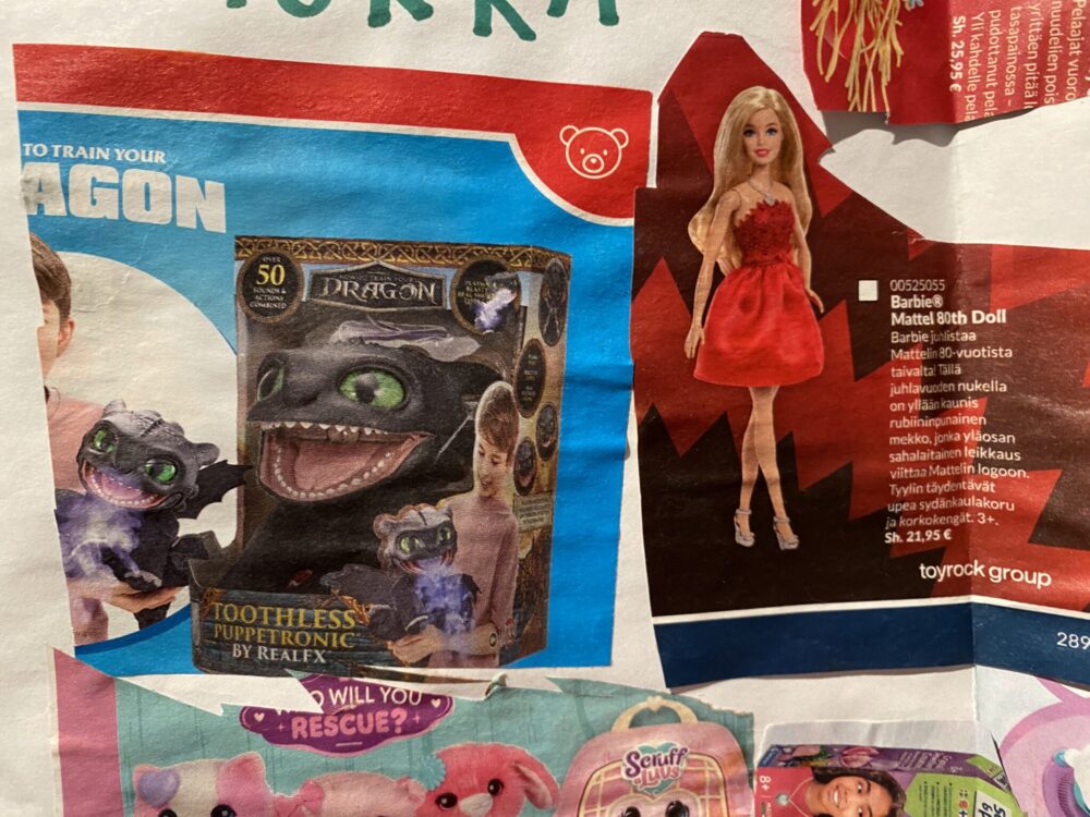 Ykköstoive on ollut How to train your dragon -elokuvasta (?) tuttu lohikäärmehahmo. Lelu on käsittääkseni osin pehmeä, ja näin vanhemman näkökulmasta siitä lähtee kuulemma yli 75 erilaista ääntä. Että tervetuloa vaan meille.