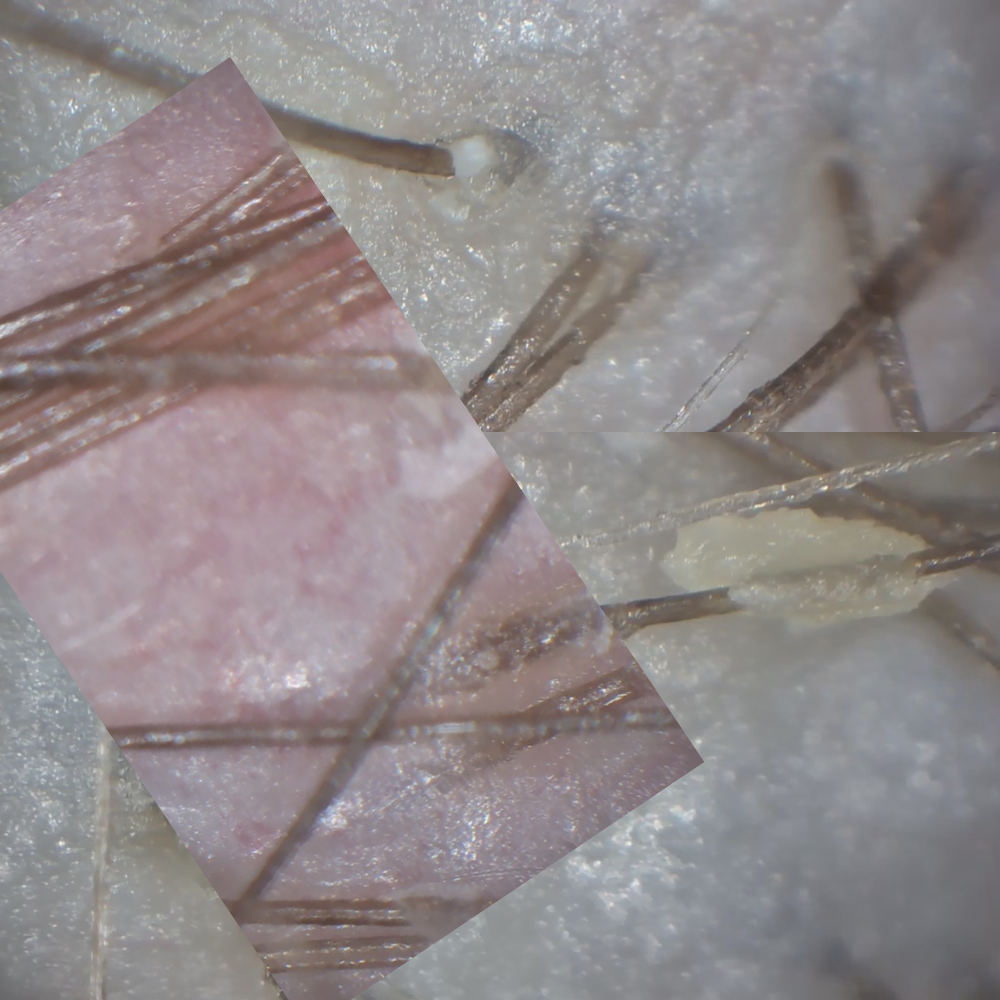 Laitteen havainnot näkyvät näytöllä suoraan kasvojen edessä, ja vaikka kuvalle teki ensialkuun mieli lähinnä irvistää, alkoi se kiehtoa aika nopeasti. Siinä todella näki oman hiuspohjan täysin uudesta kulmasta: eteen tupsahtavat konkreettisesti ne tukkeutuneet hiustupot, punoittava iho ja muut hiuspohjan ongelmat, jotka vaikuttavat hiusten kuntoon.