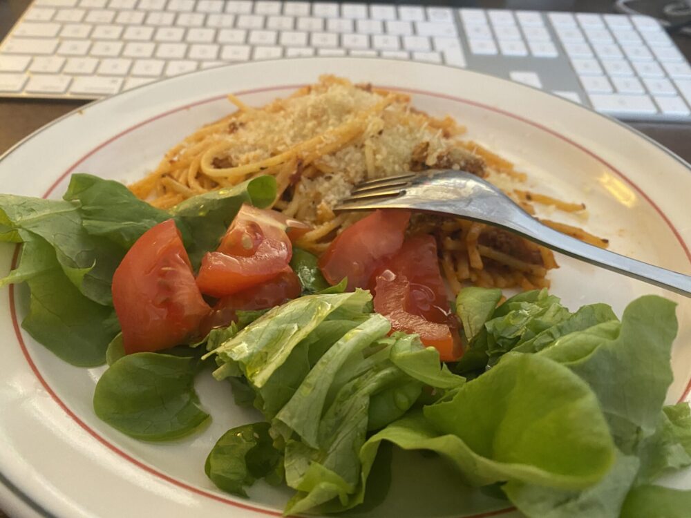 Ja arkena tuppaa olemaan että ateriat syö koneen ääreellä, tästä pitäisi ehkä joskus päästä eroon.