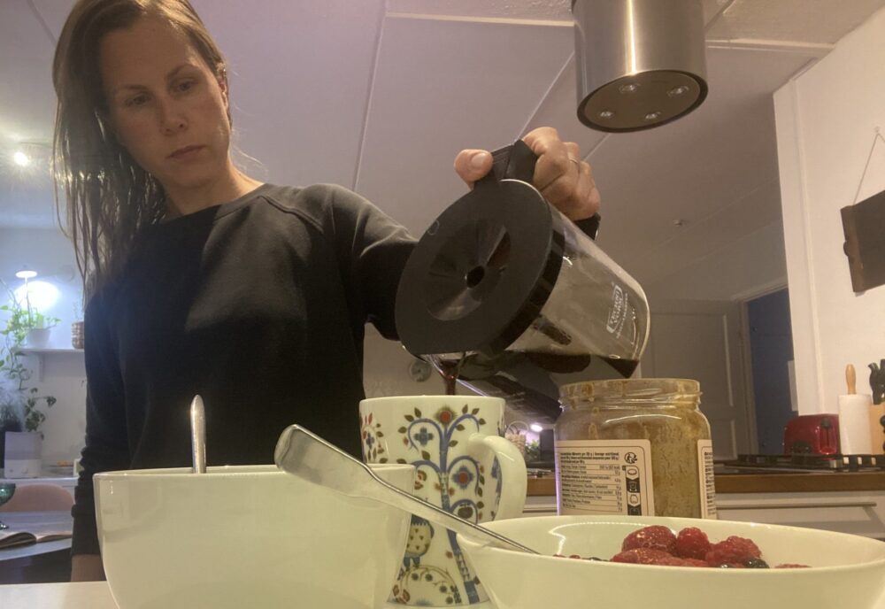 Aamupalaksi söin puuroa. Ja kahvi ja suklaakeksi.