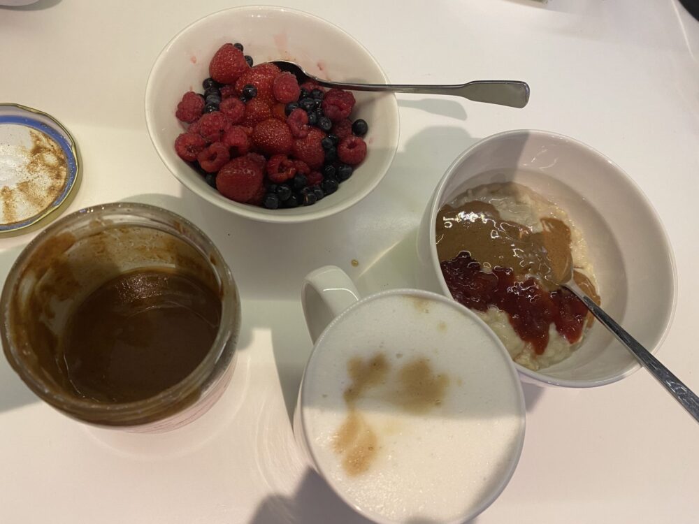 Aamupalana, yllätys yllätys, puuroa. Sen kanssa kahvia ja suklaakeksi. Aamupala on ehkä mun suosikkiruoka mutta se on näin tarkasteltuna ihan tajuttoman tylsä😅