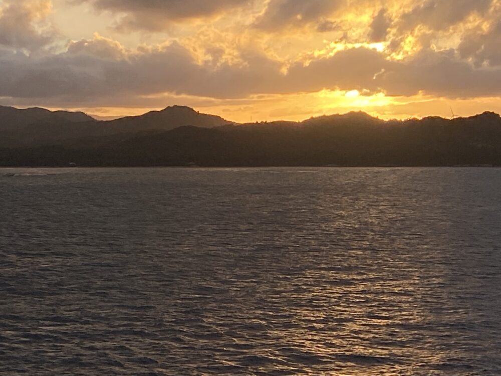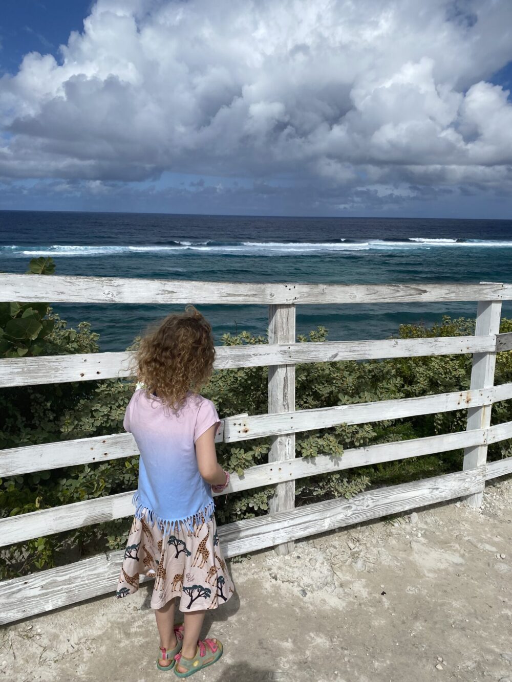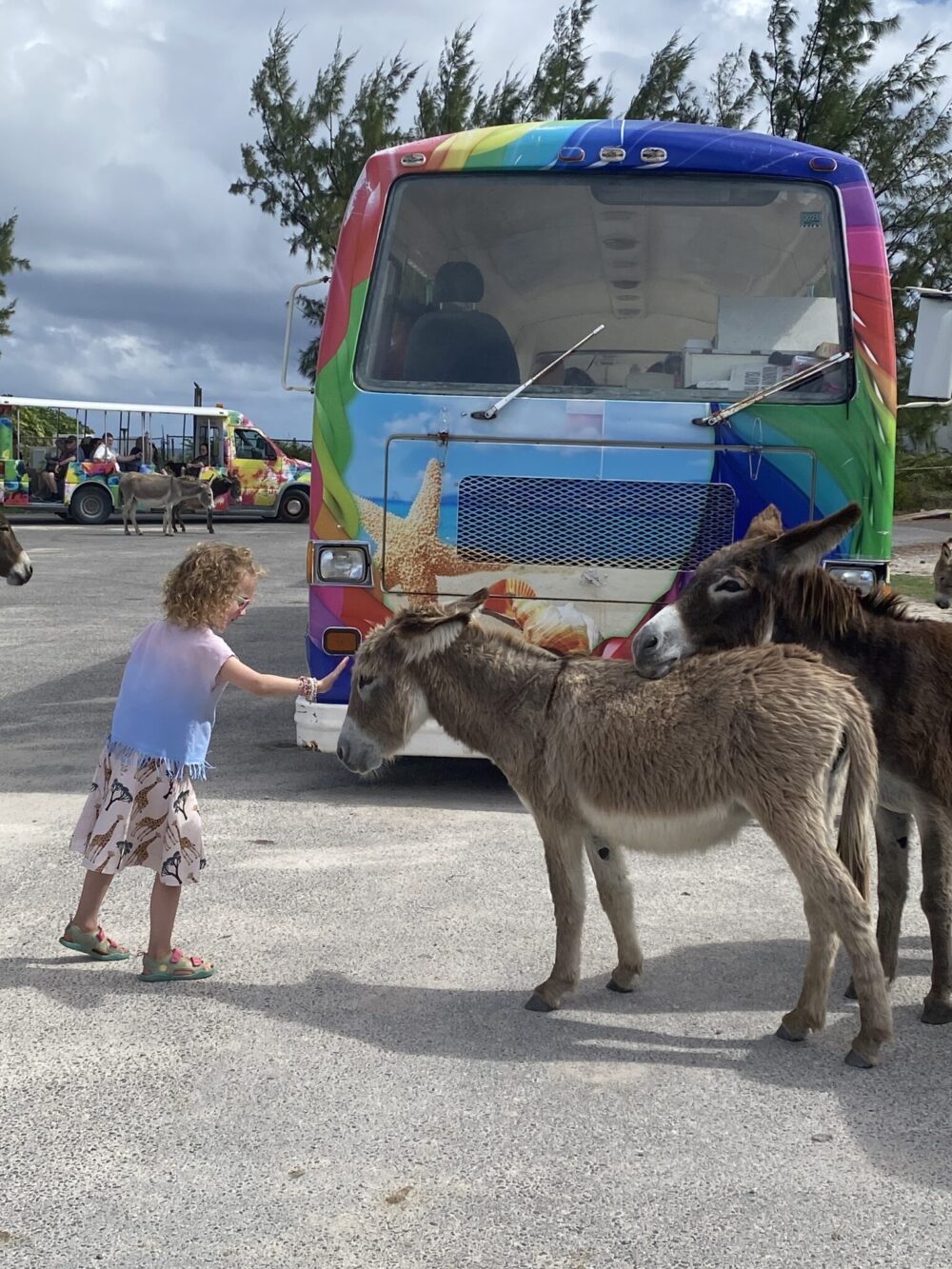 Me kiersimme saarta avonaisella Rainbow Calypso Tram -bussilla, joka oli ehkä paras tapa nähdä paikka. Ajelimme hitaasti pitkin saaren teitä, meri vilkkui vuoroin vasemmalla ja vuoroin oikealla, ja jokaisessa mutkassa tuntui tapahtuvan jotain pientä mutta merkityksellistä. Paikalliset lapset vilkuttelivat meille tienvarsilta, pihalta ja pyörän selästä ja opas kertoikin, että risteilyaluksen saapuessa ihmisten määrä saarella jopa kolminkertaistuu.