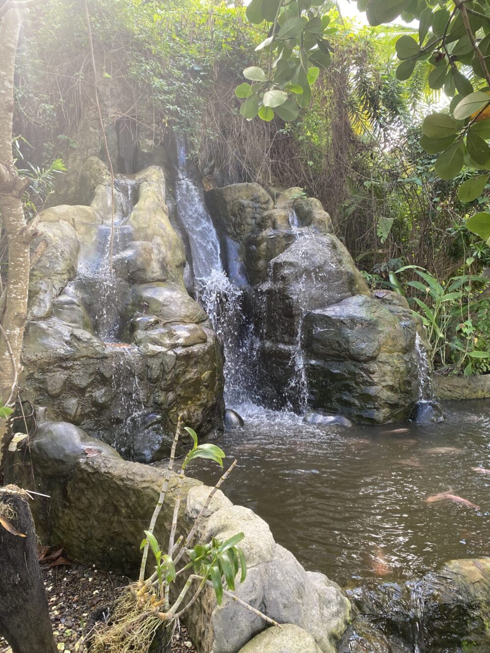 Hienompia vesiputouksia ja niille tehtyjä retkiä on tehty Thaimaassa ja Sri Lankalla, kun taas täällä oli kerralla hirveä määrä turisteja jonottamassa, että pääsee hyppäämään vesiputoukseen tai laskemaan kalliota pitkin sitä alas. Me ei laskettu eikä hypätty, vaan kiivettiin portaita ylös alas – ja todettiin että meille tämä oli kiipeilyretki, ja naperolle sekin oli jyrkkiä portaita pitkin ihan jännä kokemus.