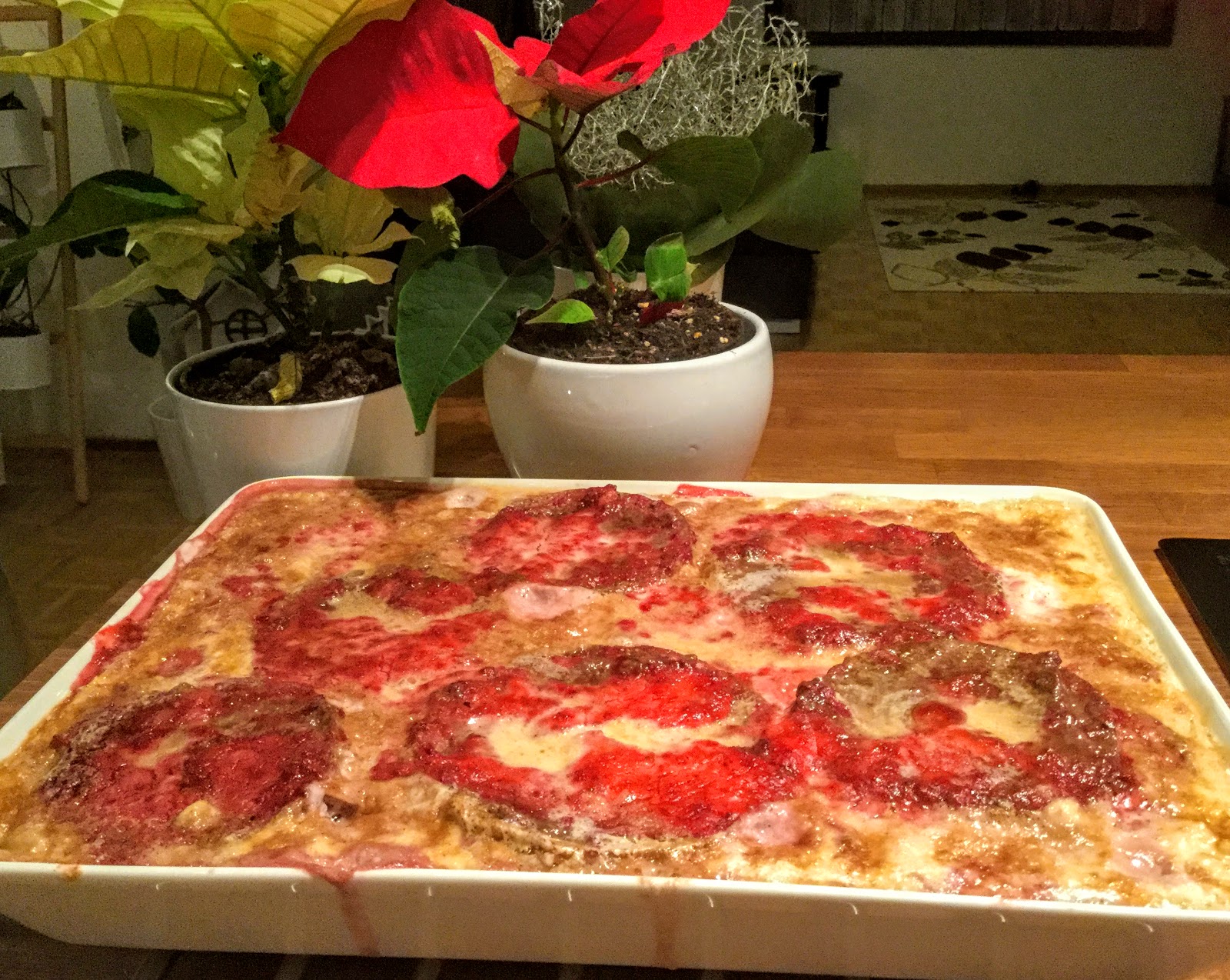 Vanukas todellakin yllätti positiivisesti myös minut. On aina vähän jännittävää tarjota vieraille jotakin uutta, kun onnistumisesta ei ole takeita. Vieraat ajattelivat saavansa jonkinlaista punajuuripaistosta vanukasvuoan nähdessään, mutta korjasin kyllä etukäteen mitä on tulossa. Maistettuaan pullavanukkaasta pitivät niin lapset kuin aikuiset, eikä rippeitä jäänyt juuri ollenkaan.