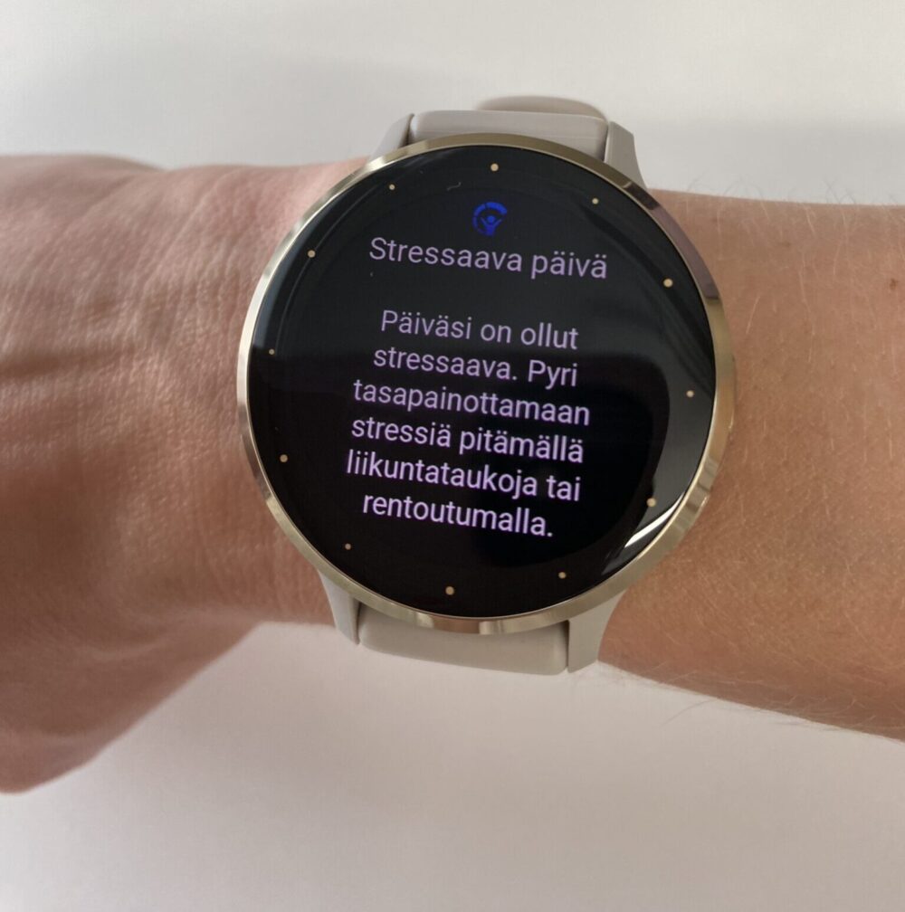 Stressitasosta en aina tiedä mitä ajatella, koska kellon mukaan olen melko stressaantunut päivästä toiseen, vaikka oma olo olisi ihan leppoisa. Se toki pistää stressiksi niin aamupyöräilyn töihin kuin lapsen hoitamisen eskariin, mitkä on ihan perusarkeen kuuluvia juttuja. Koska töihinkin pyöräilee vain vartin, en laita mitään pyöräilyn tallennusta erikseen päälle. Mutta älykello ei ole täydellisen älykäs, eikä voi ikinä tietää ihan kaikkea mitä on meneillään. Joten kokonaisuus vaatii tietty myös omaa harkintaa ja ymmärrystä millainen fiilis päivässä on. Jos jalkoja painaa, ei tarvitse juosta, vaikka Body Battery näyttäisi mitä.
