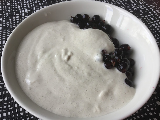 Oma suosikki tapani käyttää tätä vaniljakastiketta onkin juuri marjojen ja soijajogurtin kanssa. Yleensä sitä tulee valmistettua nimenomaan jonkinlaisen piirakan kanssa tarjottavaksi, mutta teen mielelläni kerralla isomman satsin ja hyödynnän kastikkeen lopun muilla tavoilla.